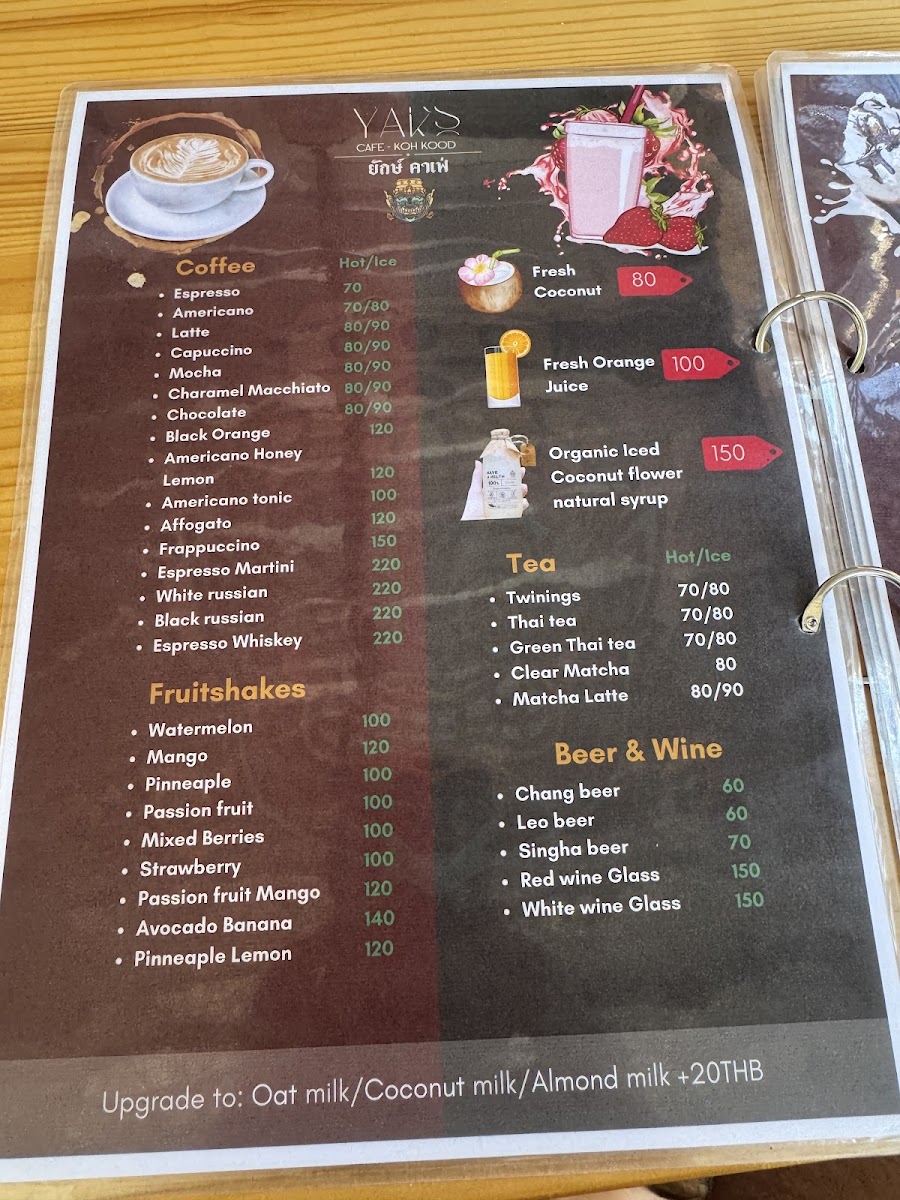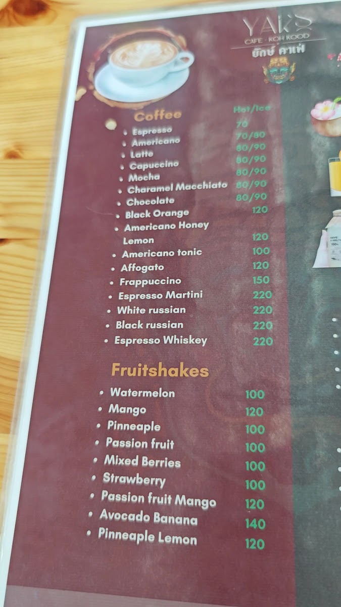 Yak's Cafe Koh Kood Menu